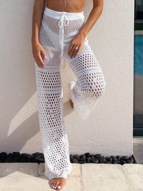 Le cambiás los accesorios y el mismo pantalón tejido lo podés llevar a la noche. Hoy las transparencias mandan y el ítem no pants (término que se usa para los pantalones transparentes) es el must have del verano 2024.