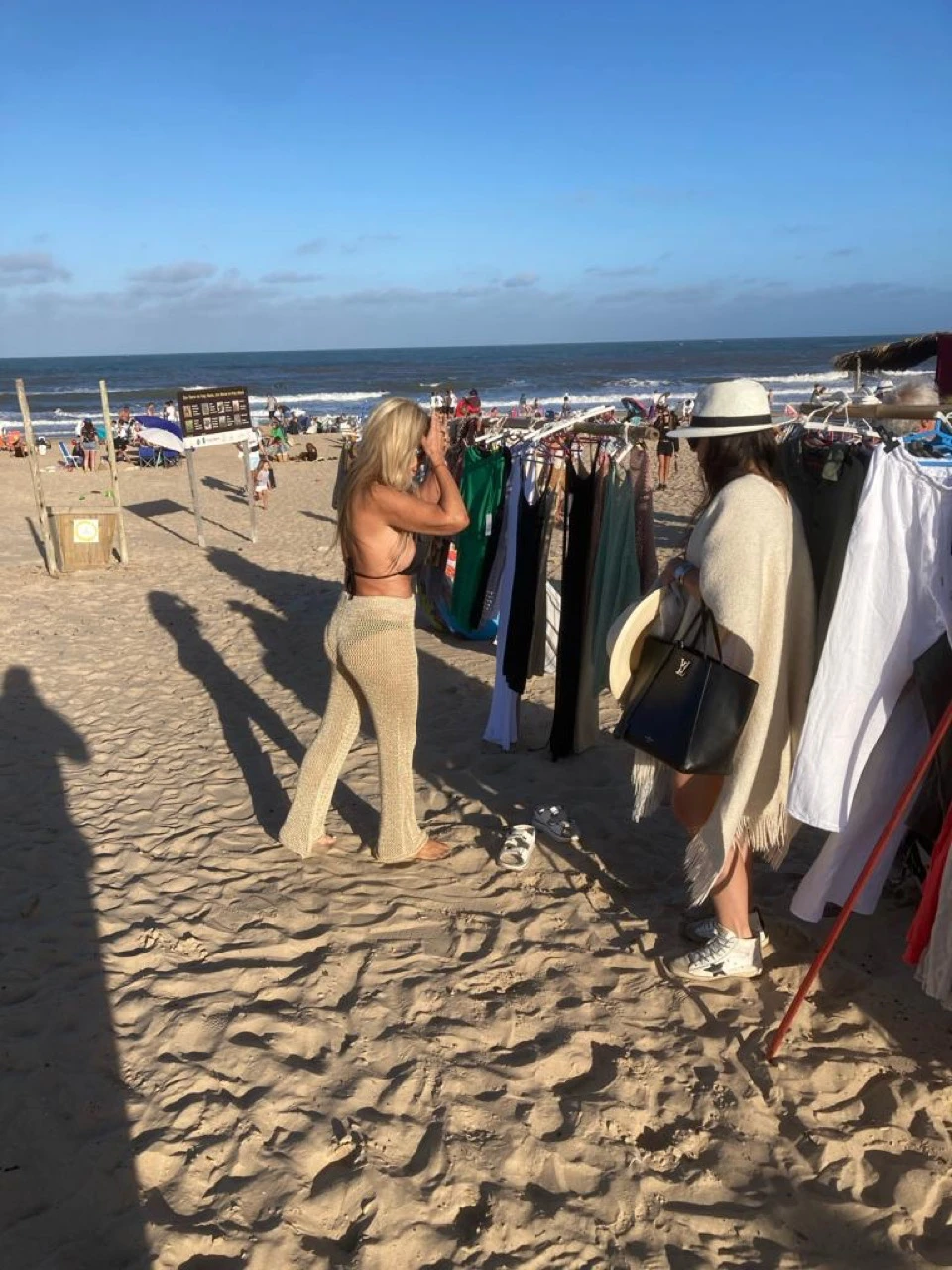 Este sábado a ella se la vio comprando en la playa un ítem de moda de la temporada. Graciela miró con atención la oferta que tenía en el perchero un vendedor ambulante de la playa y ahí mismo se probó un pantalón de crochet y se lo dejó puesto.
