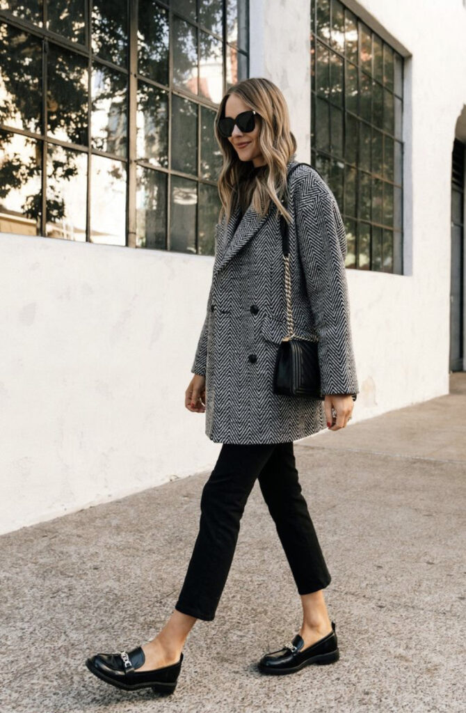 Los mocasines se adaptan también a atuendos más formales como el de la foto. Todo es cuestión de cómo los combinemos, y un buen abrigo es muy importante para elevar lo que llevamos puesto.
