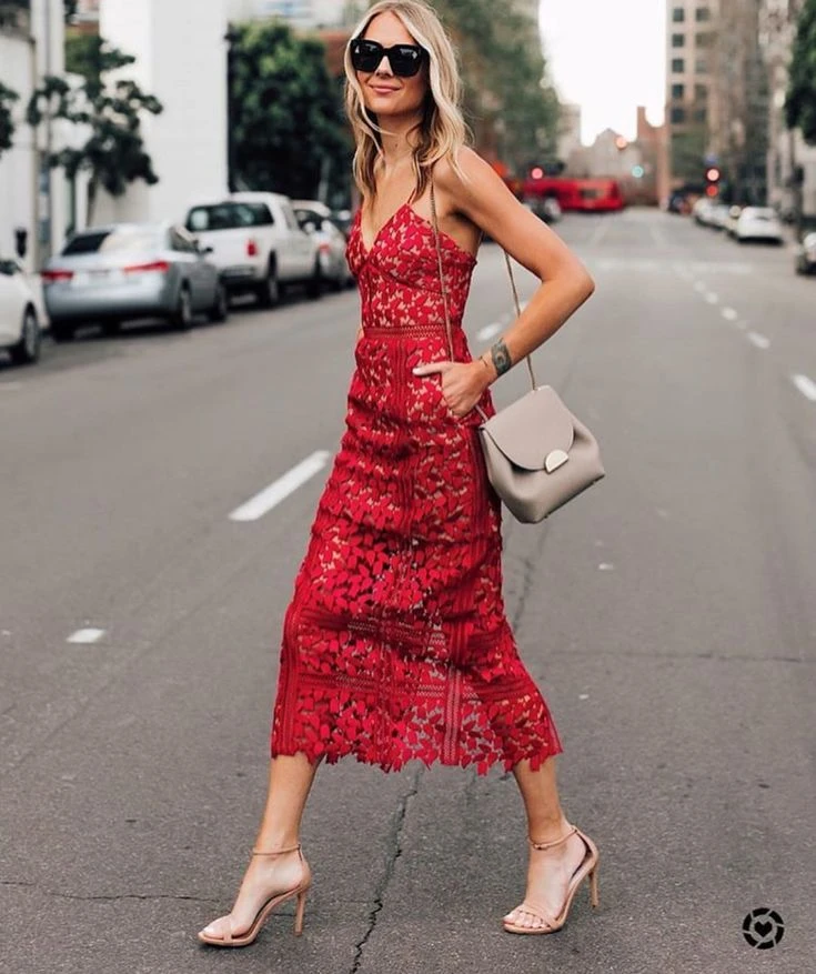 Llevar un conjunto rojo monocolor es un truco de estilismo que siempre funciona. Si no tenés accesorios a tono para sumar, combinalo con zapatos de color negro y una cartera multicolor.