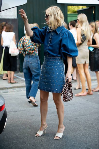 Animate a un look total denim combinando una blusa con una minifalda. Podés sumar sandalias y un bolso con estampa de leopardo, que es una de las que más se usan esta temporada.