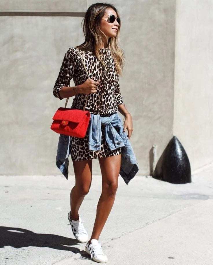 Los mini vestidos son una de las prendas comodines para lookearte en el verano. Combinalos con unas zapatillas urbanas y una campera de jean anudada a la cintura.