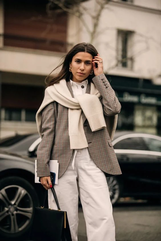 Uno de los looks que más vimos en el street style es llevar los suéters con sastrería así le da un toque más fresco y descontracturado al outfit.