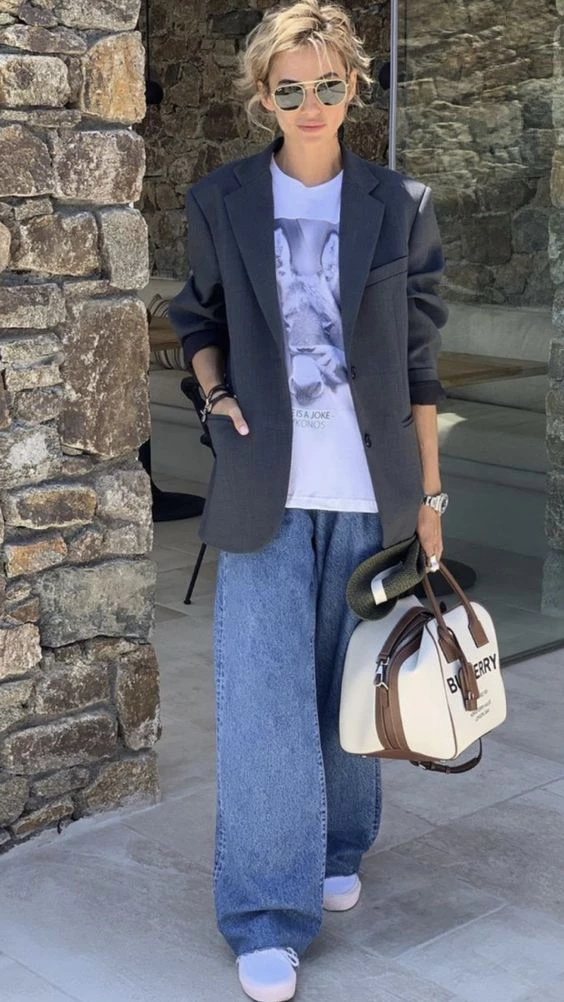 Para ser una prenda de tendencia, los jeans anchos son mucho más versátiles de lo que te imaginas. Para empezar, se pueden llevar todo el año y quedan bien con casi cualquier tipo de calzado.
