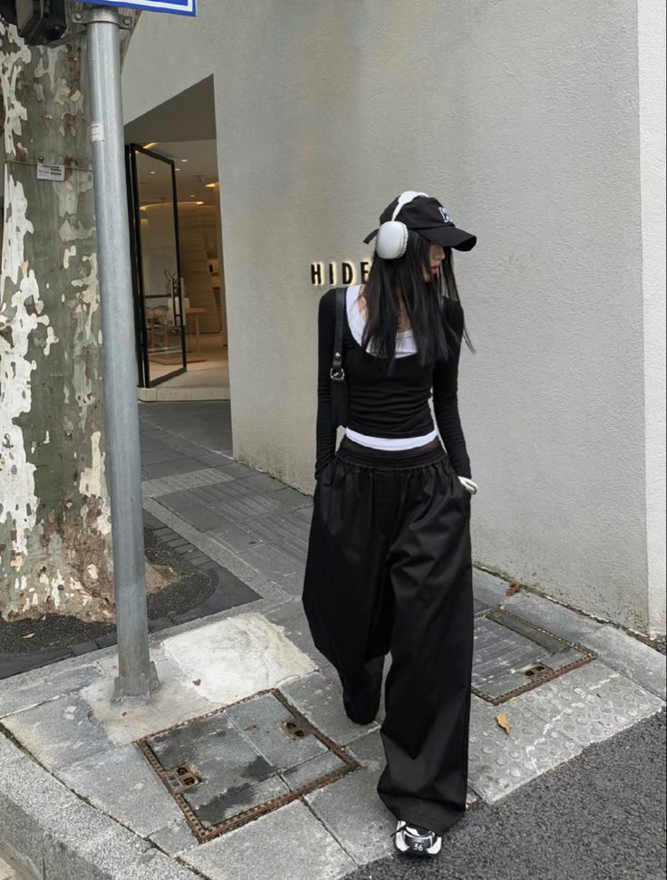 Para ello, podés utilizar la vieja confiable: total look. Combinar pantalones parachute con bodys y sacos livianos color crema o sweaters deshilachados con jeans tiro bajo y tank tops color negro.