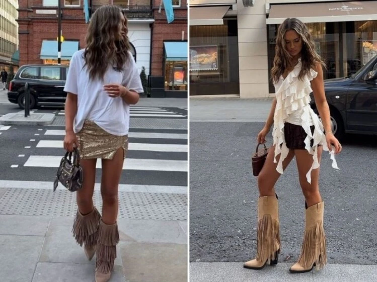 El estilo boho chic pisa fuerte esta temporada y las botas texanas con flecos son su máximo emblema. Inspiradas en el aire libre, los festivales y el encanto del Lejano Oeste, estas botas vuelven a ser protagonistas del street style.