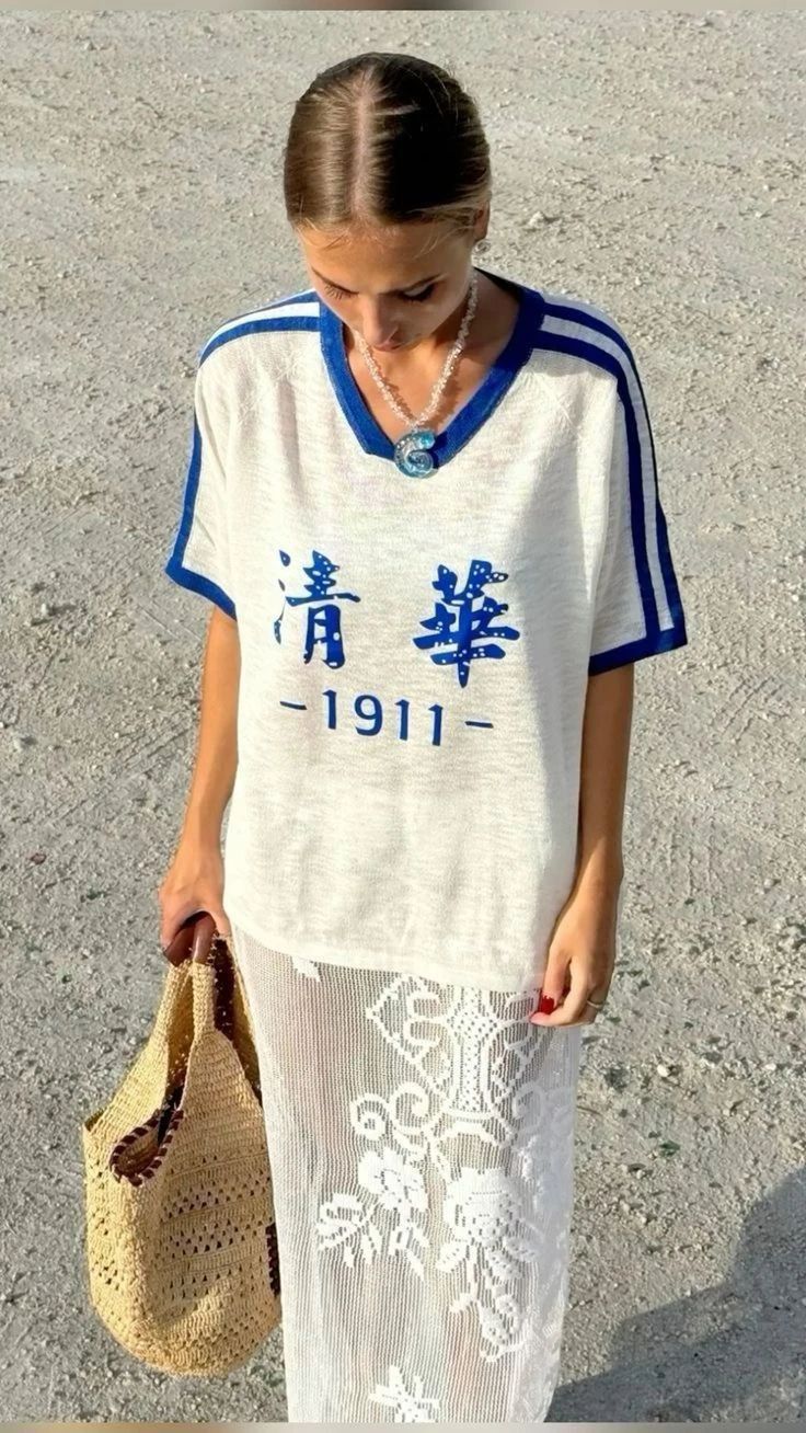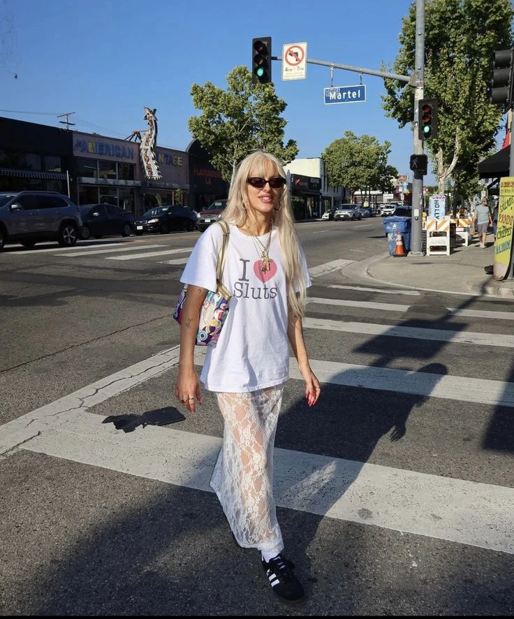 Una de las opciones es usar la falda de encaje con camiseta de fútbol. Esta tendencia tomó el nombre de blokette porque es la suma de blokecore (por las camisetas deportivas) y coquette (por la falda de encaje).