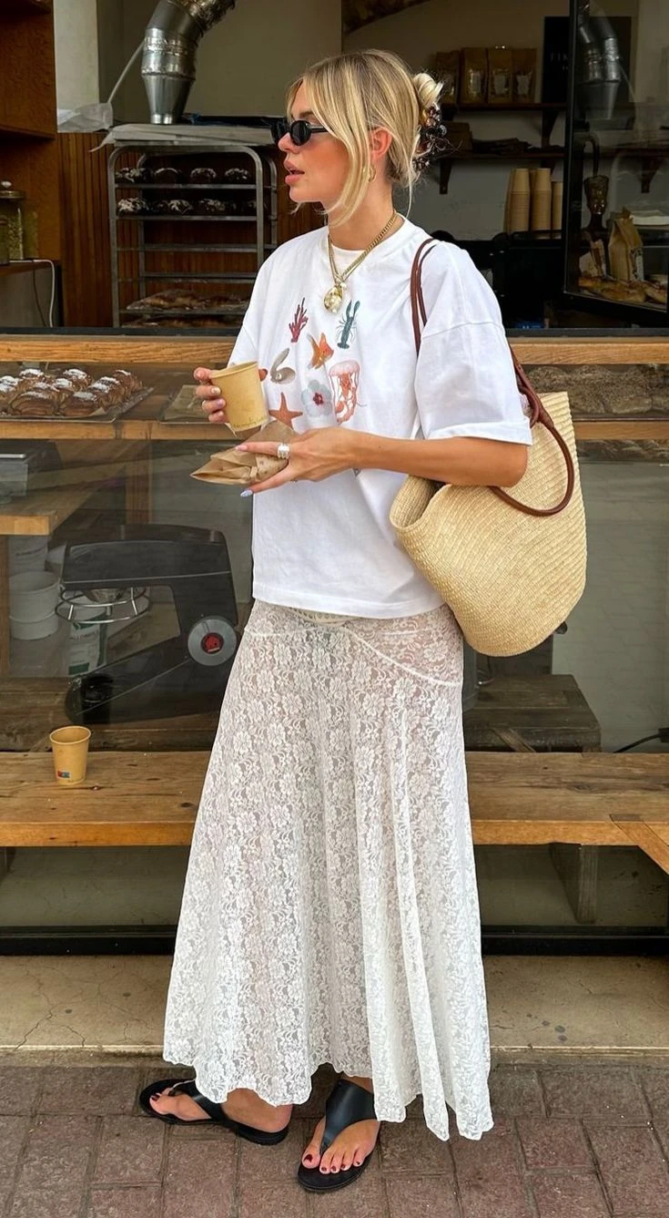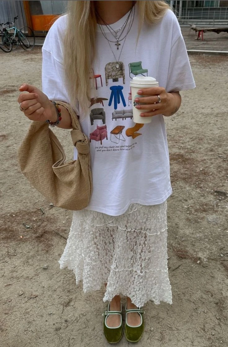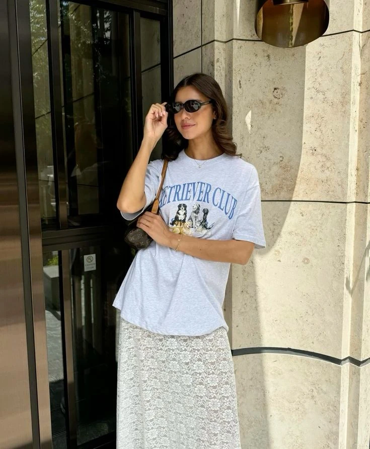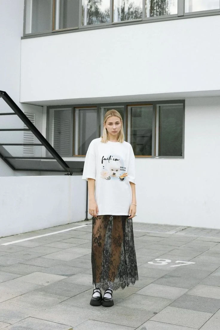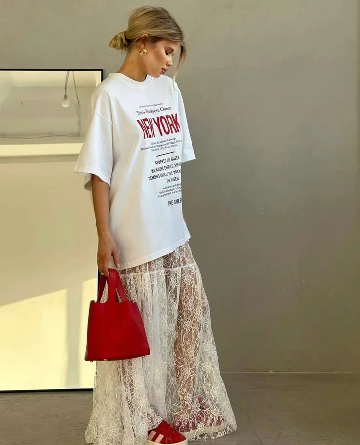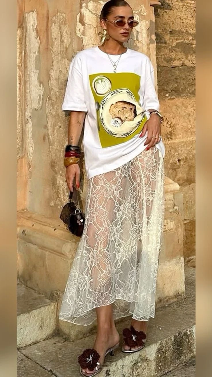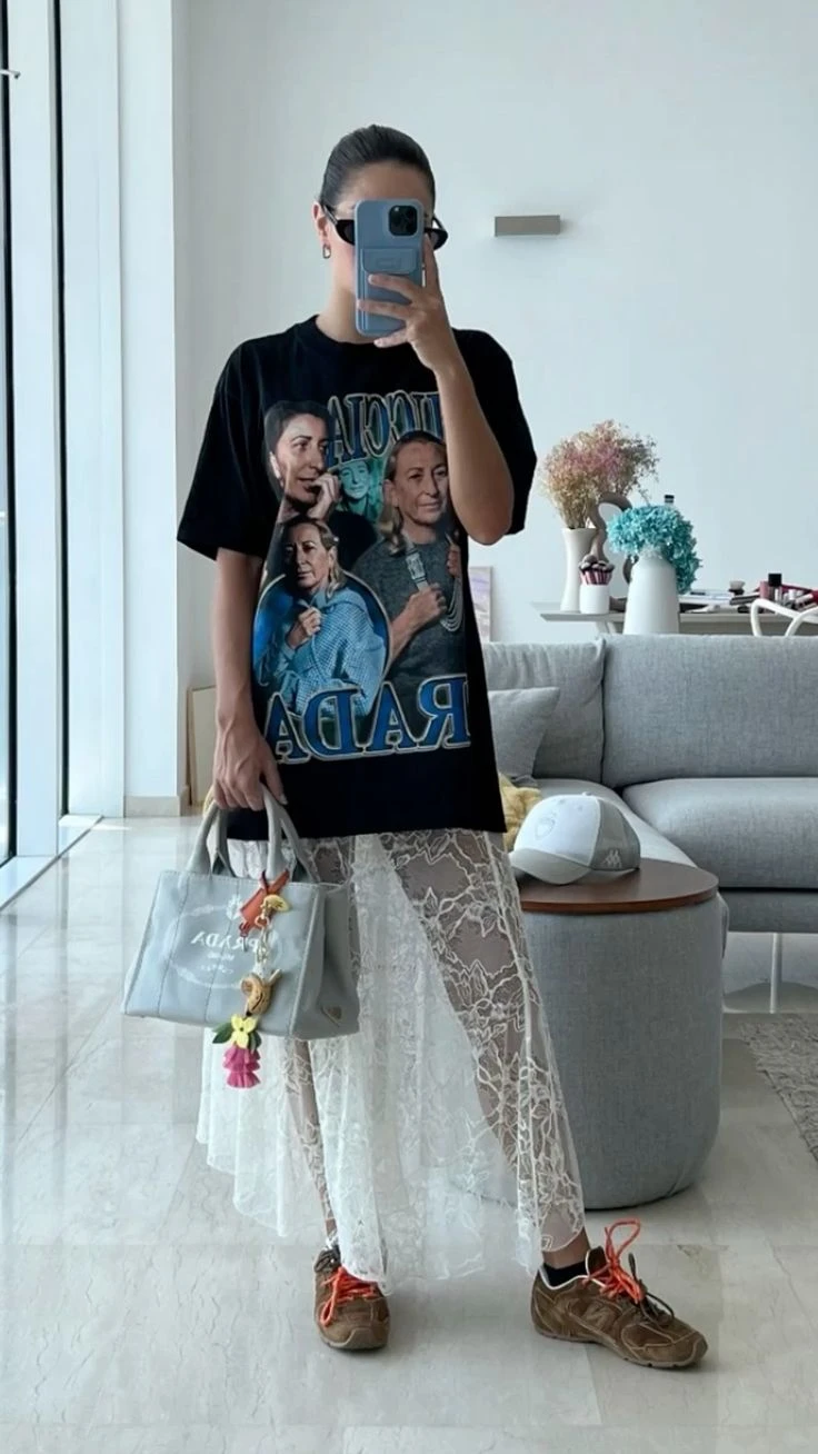 Esta primavera, las faldas de encaje son el ítem de moda del momento. Y se llevan de una manera particular: se combinan con remeras.