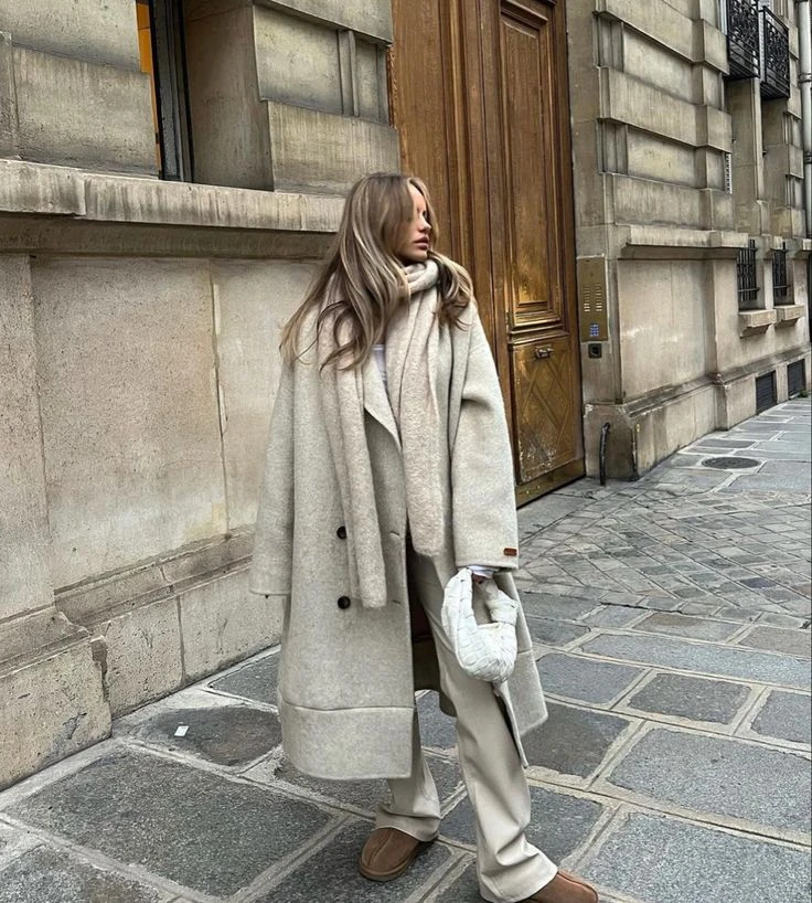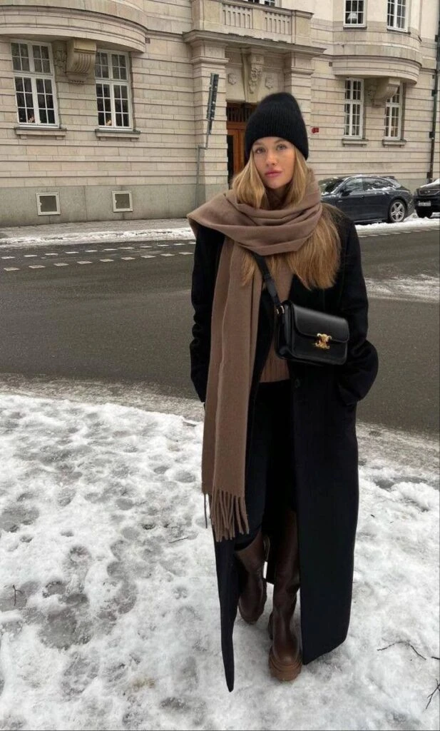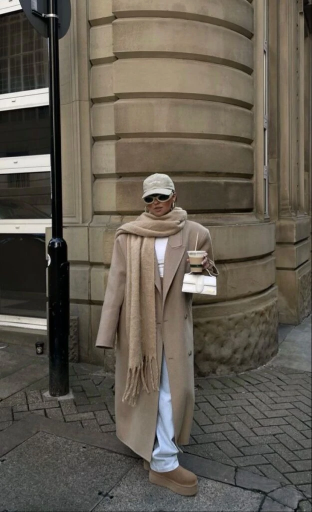 Después, agregamos un suéter finito y, arriba, otro buzo, de preferencia que todo presente la misma gama de colores. Por último, un tapado que llegue hasta las rodillas, así también tapamos las piernas y, para cerrar, una maxi bufanda para tapar el cuello.
