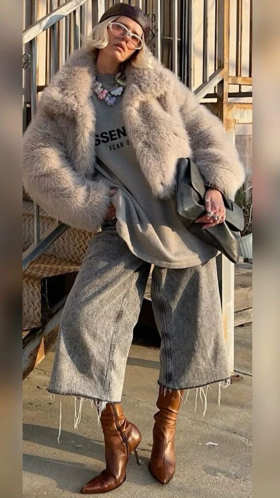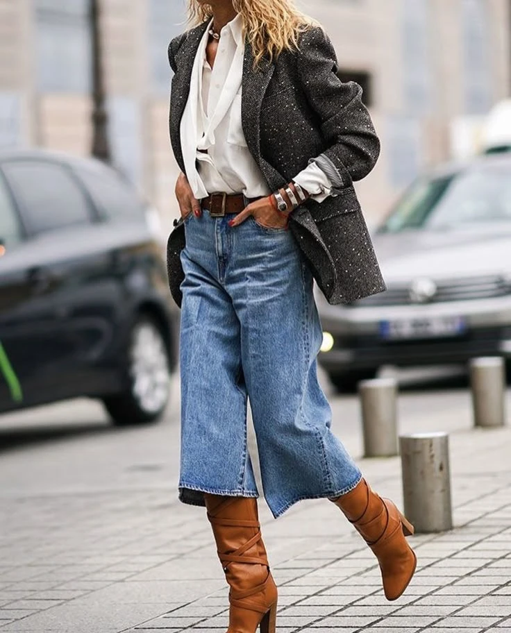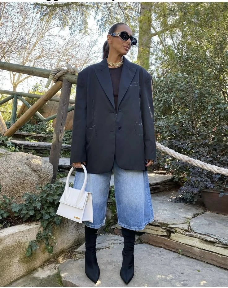 Otra gran apuesta de estilo es sumar un abrigo de paño, de piel o un blazer masculino. Estas prendas estructuradas le aportan elegancia a las bermudas de jean y permiten que se adapten incluso a looks de oficina o salidas nocturnas.