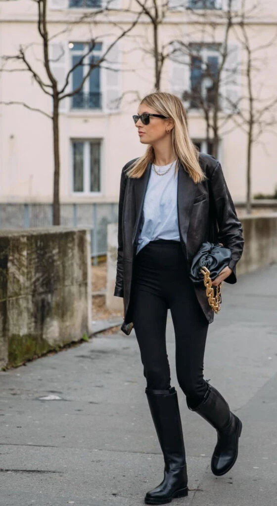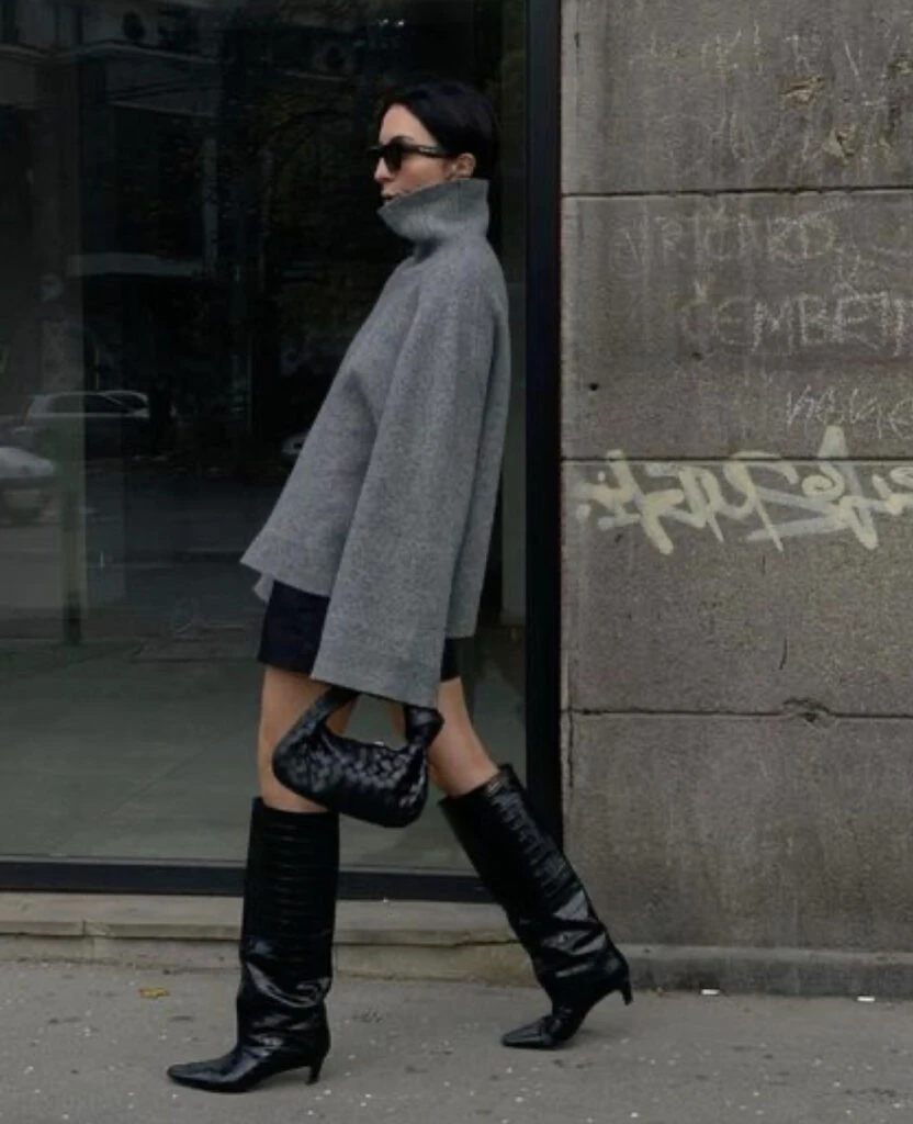 Los looks black and white siempre funcionan. Si apostamos por ellos nunca vamos a estar mal vestidas. Así que, es la temporada ideal para invertir en un buen par de botas negras como la de la foto.
