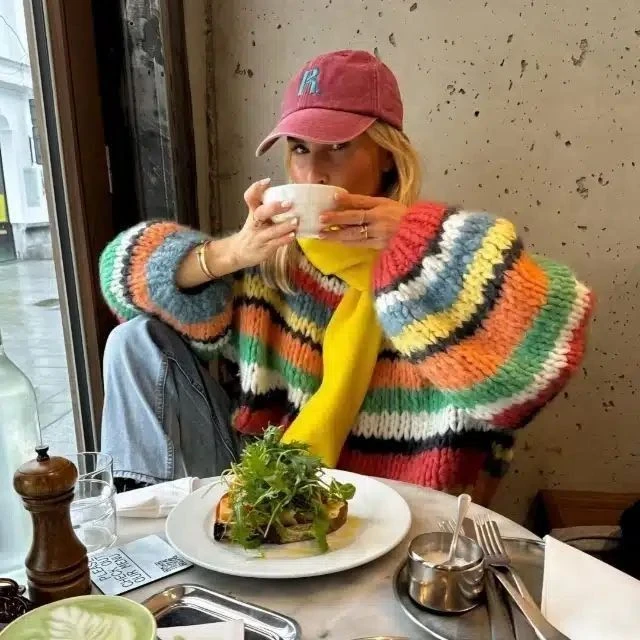 El invierno ya no es sinónimo de tonos apagados. Este año, el suéter colorido se volvió el nuevo statement. Rojo, verde, violeta, fucsia o combinaciones vibrantes: cuanto más llamativo, mejor. Llevá el tuyo con jeans, pantalones neutros o incluso un total look monocromo.