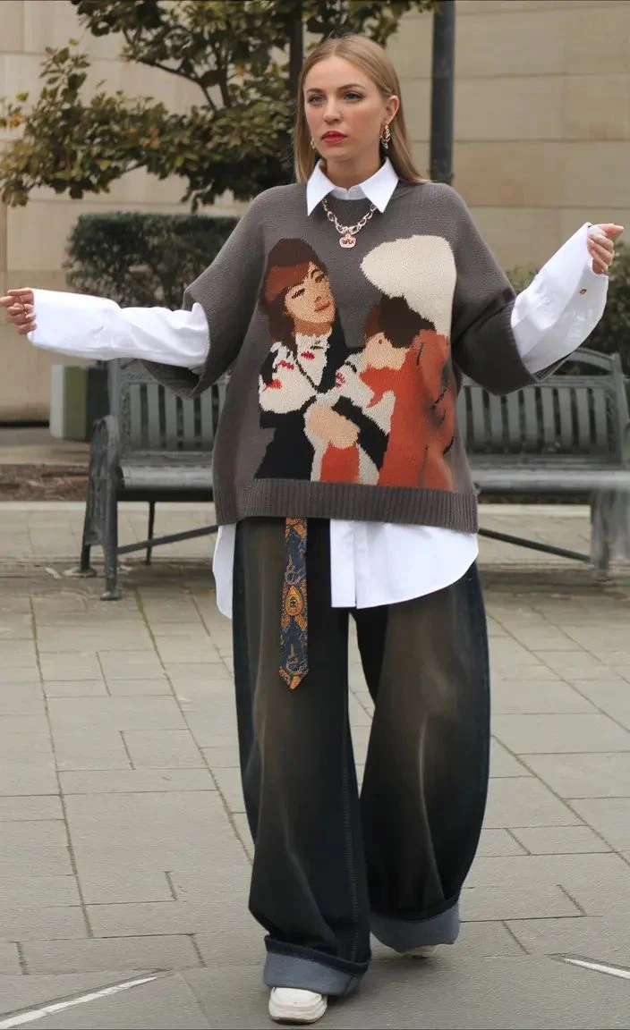 El suéter oversize es ideal para un look de transición entre lo formal y lo relajado. Elegí uno en tono beige, camel o gris y sumale unos jeans straight o wide leg. El resultado: canchero, cómodo y perfecto para cerrar la semana laboral con estilo.