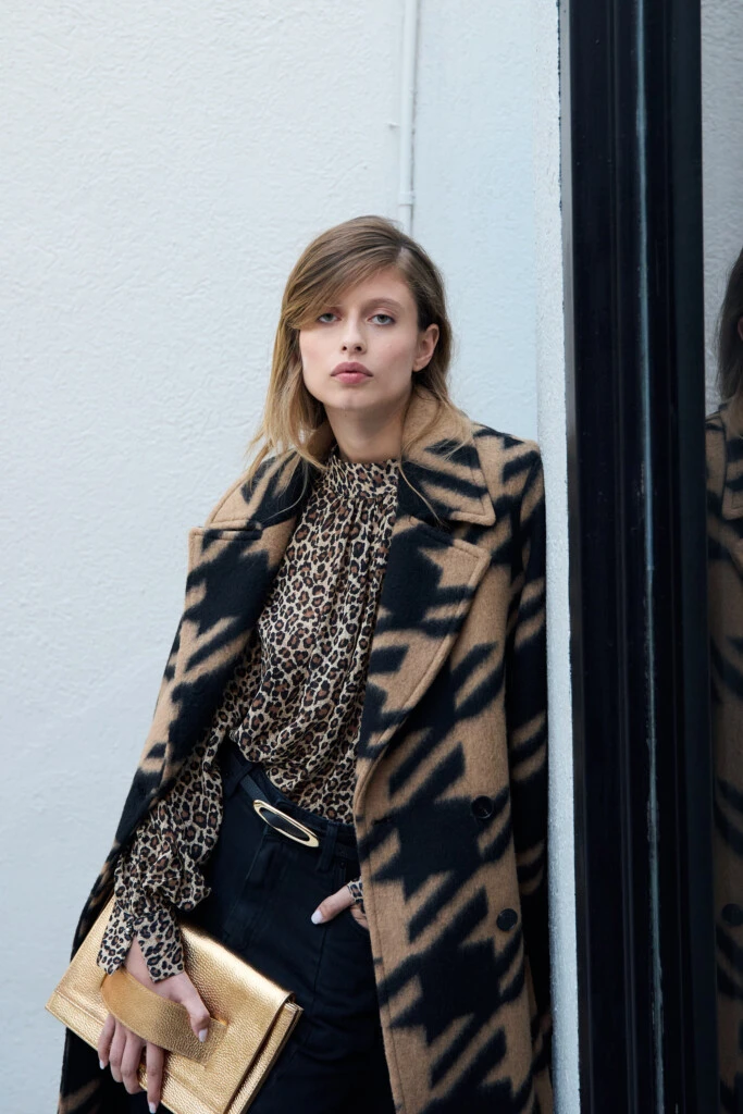 Los abrigos —desde tapados de pura lana hasta camperas de gamuza y chaquetas doble faz con interior escocés— acompañan sin imponerse, mientras que los detalles terminan de construir el universo Iconica: prints propios, encajes, lencería y propuestas nocturnas que priorizan la presencia antes que el exceso.