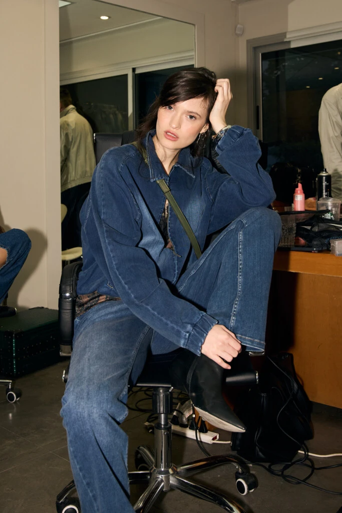 El denim se posiciona como columna vertebral de la propuesta, desplegado en múltiples siluetas —recto, mom, wide leg, slouchy, balloon y barrel— y en versiones intervenidas que suman textura y carácter. Aparecen gamuza lijada que deja ver la trama, broches inferiores y volúmenes amplios con movimiento, mientras que la paleta recorre azul profundo, chocolate, negro, crudo y un burgundy que eleva el conjunto.