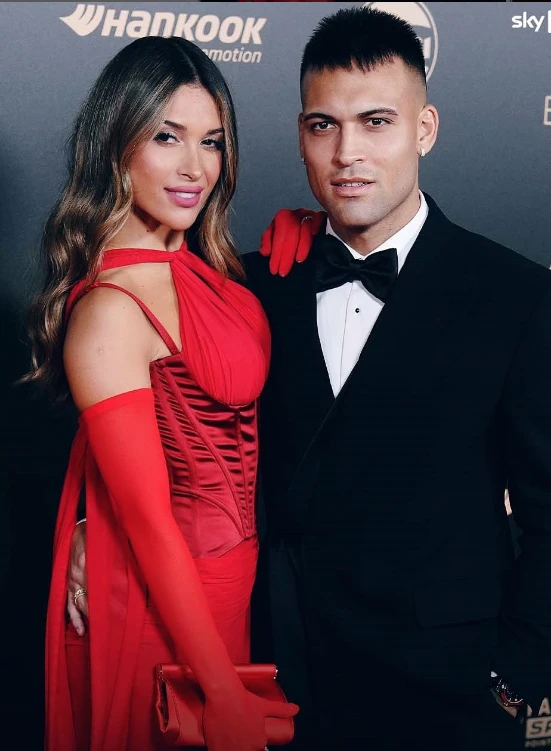 El candidato argentino al premio mayor fue el goleador de la Copa América 2024, Lautaro Martínez, quien asistió junto a su esposa Agustina Gandolfo. La influencer adoptó un llamativo vestido rojo que marcaba su silueta. En concreto se trató de un diseño ajustado al cuerpo, con escote halter y un corsét que delineaba su cintura. Complementó su look con guantes largos del mismo color y un clutch e satén también al tono.