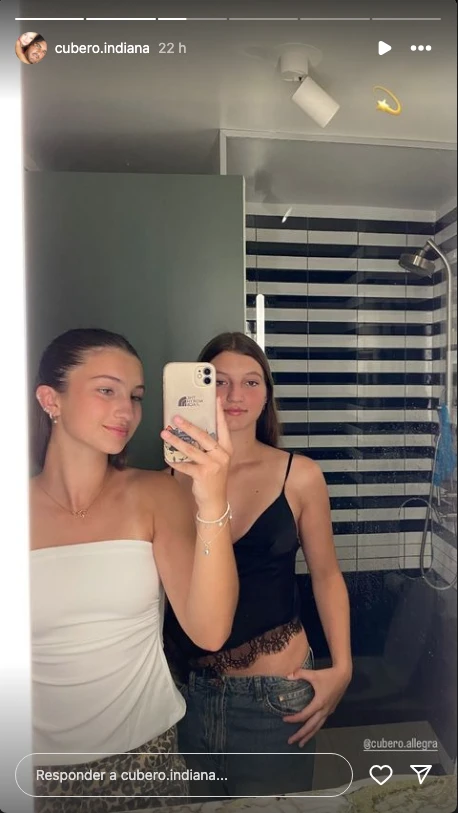 En el caso de sus hijas, la que mostró su outfit playero fue Indiana, que lució un enterizo de estilo deportivo en color negro con ribetes blancos.