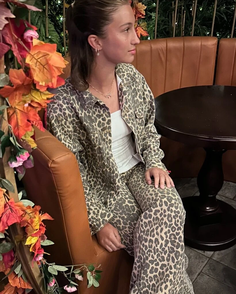 La joven de 16 años, que está en Nueva York, optó por un equipo de jean y campera de denim con diseño de leopardo. Cabe recordar que Indiana está en los Estados Unidos junto a su mamá, sus hermanos Allegra, Sienna y Cruz, y Manu Urcera.