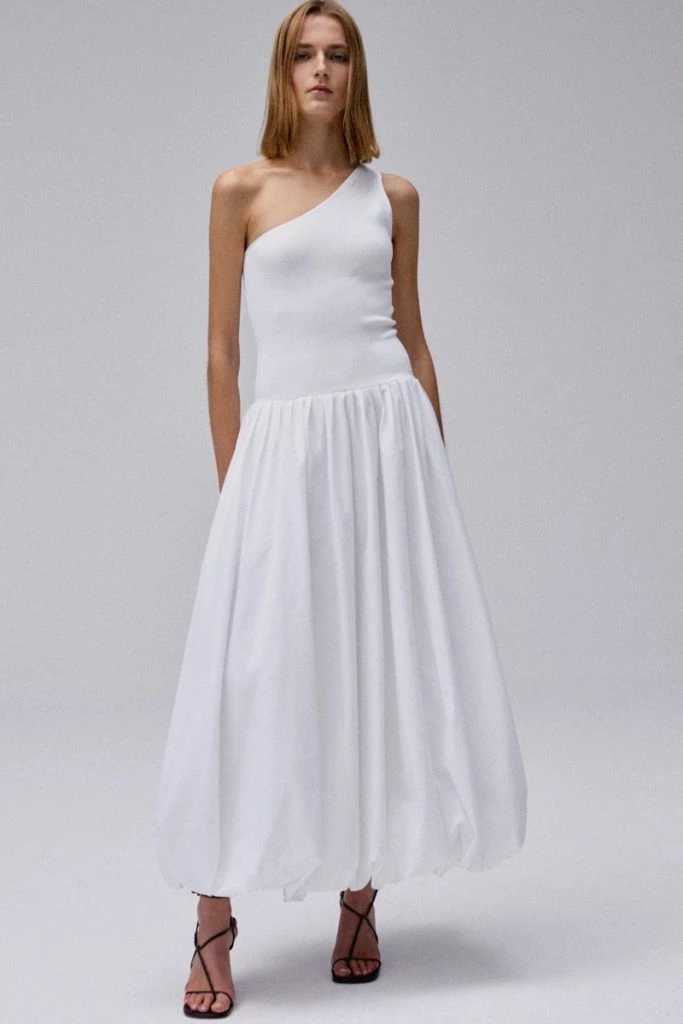 La asimetría se adueña de las propuestas nocturnas, en vestidos, tops o blusas logran una sileta moderna y sofisticada.