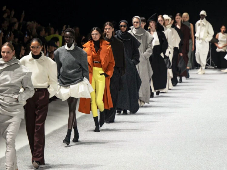 Las siluetas evocaban una estética nómada, con modelos envueltos en amplios pliegues de tela que recordaban a beduinos urbanos, una imagen que transmitía misterio y cierta sensación de monumentalidad.