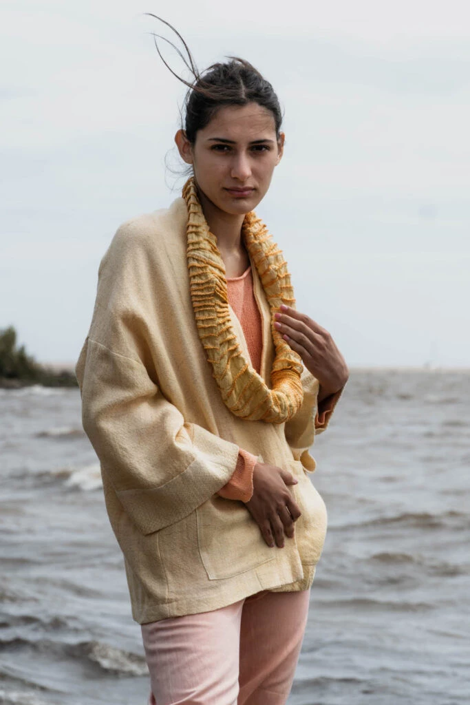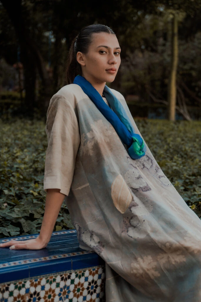 Además de utilizar fibras naturales, Ampara incorpora elementos de la flora nativa en sus prendas, convirtiendo a las estampas vegetales en protagonistas dentro de sus colecciones. Se logran a través de tintes naturales y pigmentos orgánicos que se extraen de plantas, insectos y minerales, que son sostenibles y respetuosos con el medio ambiente. Al mismo tiempo, esta técnica artesanal permite obtener una gama de colores única y variada que transmite naturalidad.