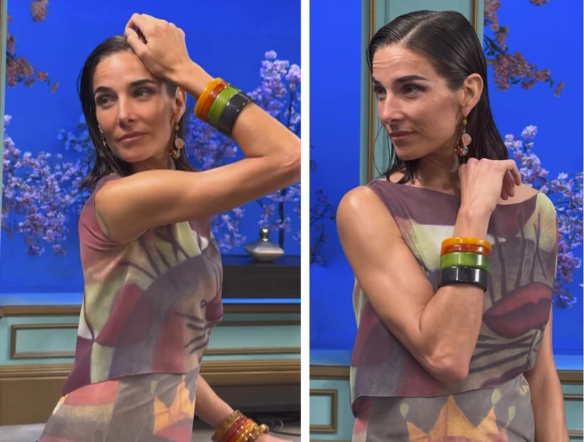 Juana Viale apostó por la moda circular en la mesaza de este domingo: llevó un look reciclado