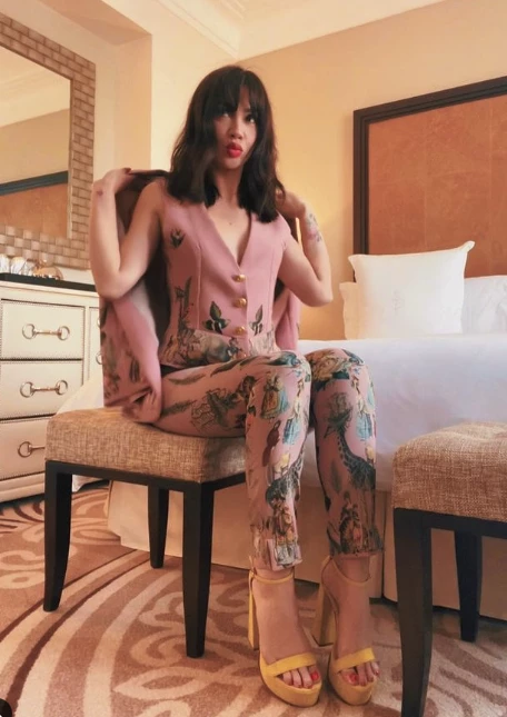 Por su parte Celeste Cid, usó el mismo traje con sandalias amarillas súper altas con pulsera y plataforma. Un look ideal para llevar como invitada a un casamiento.