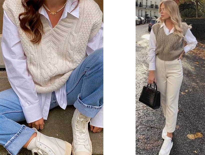 Este jueves, todo indica que habrá sol y la máxima será de 19°; la mínima, de 13°. Va a ser un día de temperatura casi primaveral podemos decir. Por eso, la propuesta es armar un look con chaleco de lana. Acá te pasamos algunas ideas del street style: