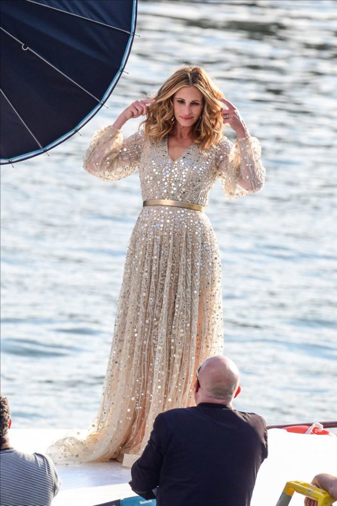 Julia Roberts deslumbró en el rodaje de un nuevo comercial de la firma Lancome. La filmación se llevó a cabo en París, a orillas del río Sena, y a plena luz del día, a la vista de turistas y vecinos de la zona.
