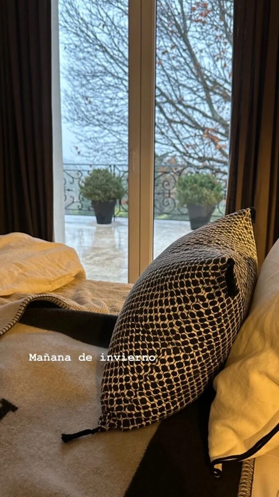 En su último posteo, Juliana subió una historia en la que estaba sentada en el living de su casa vestida con un look monocromático que funciona tanto de día como de noche.