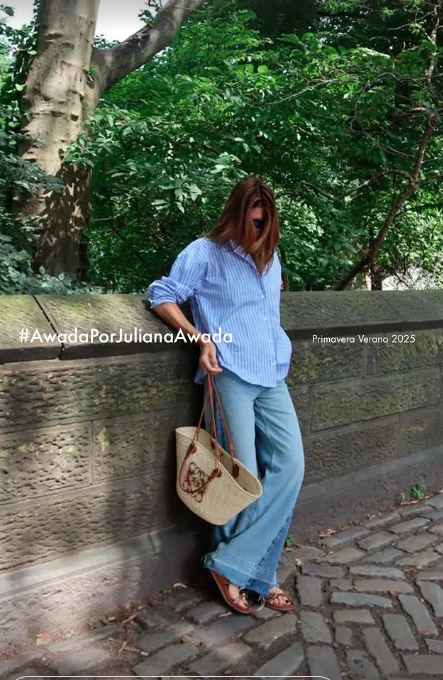 La empresaria y referente de estilo apostó por una camisa de rayas finas en tonos celeste y blanco, llevada de manera descontracturada con jeans claros y sandalias, una fórmula simple que funciona siempre. El estilismo respira frescura y naturalidad, dos sellos que definen el ADN estético de Juliana, y refuerza el carácter atemporal de esta prenda.