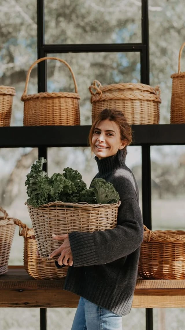 El contexto rústico y natural de la escena acompaña a la perfección su estilo relajado, sin perder el toque chic que la caracteriza.