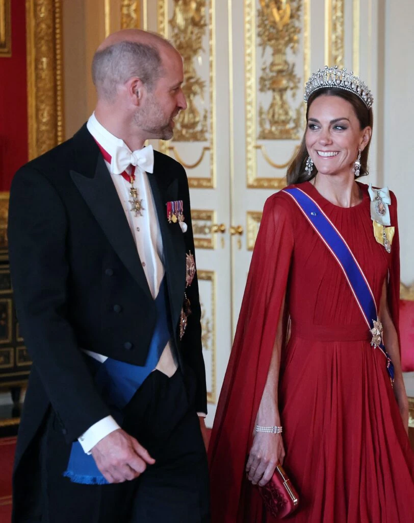 Kate Middleton retomó sus compromisos reales en clave de gala con una aparición impactante en el banquete oficial que Carlos III y la reina Camila ofrecieron en el castillo de Windsor en honor al presidente de Francia, Emmanuel Macron, y su esposa, Brigitte. Se trata de su primer evento de gala desde que anunció su enfermedad, y su regreso no pasó desapercibido: la princesa de Gales brilló con un estilismo que conjugó diseño contemporáneo y herencia real.