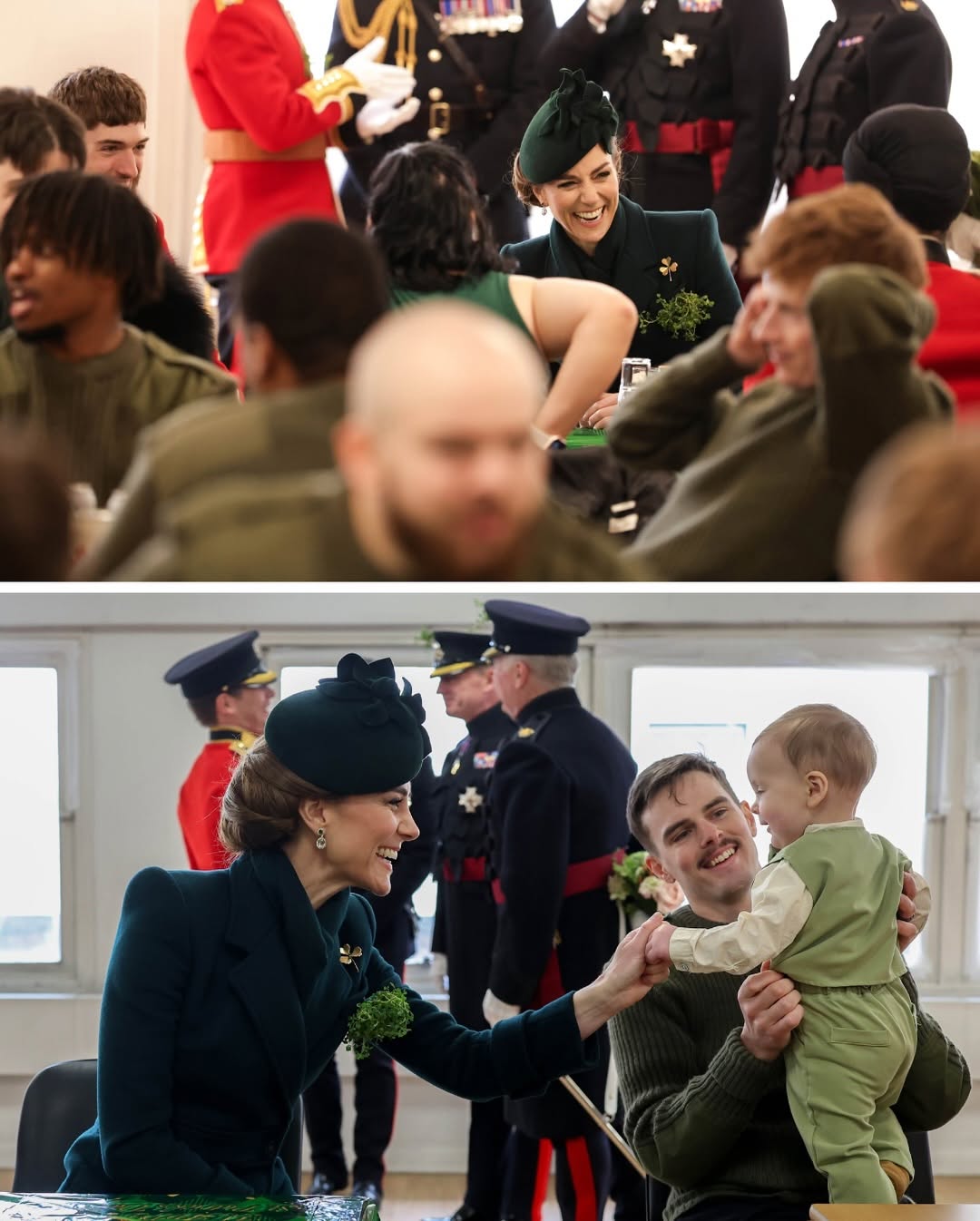 "¡Feliz Día de San Patricio! ☘️ Me alegra mucho volver a unirme a la Guardia Irlandesa en su desfile anual de San Patricio aquí en el Cuartel Wellington. Me enorgullece ser su Coronel y celebrar hoy con ustedes los 125 años del regimiento", escribió Kate en su posteo de Instagram en el que incluyó varias fotografías de la celebración, donde luce sonriente y radiante.