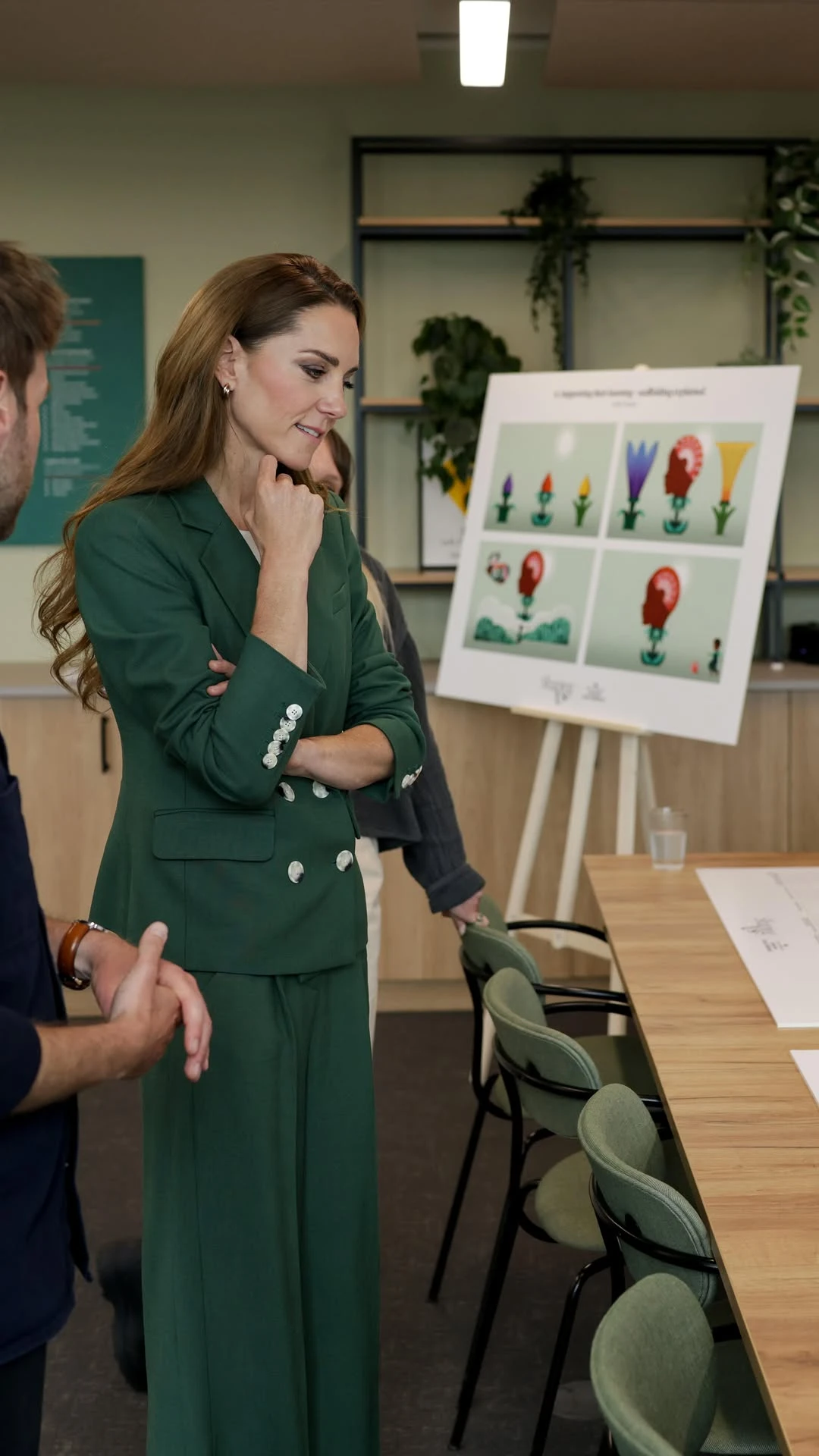 A través de un video compartido por el centro infantil, se dio a conocer el look elegido por Middleton. A diferencia de sus últimas apariciones, la royal optó por un traje sastrero en color verde, una tonalidad que transmite frescura, equilibrio y que evoca a la naturaleza. Además, está asociado a la tranquilidad y salud.