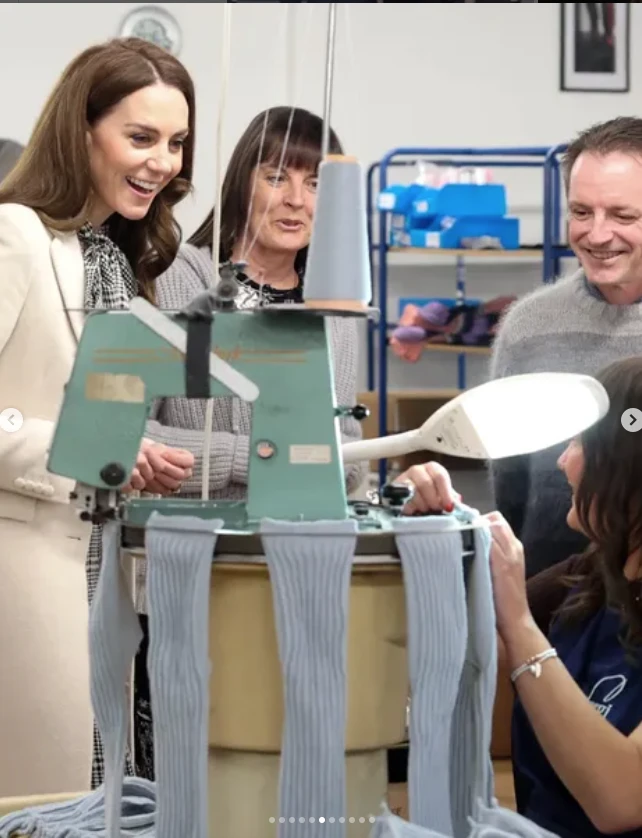 Posteriormente, la princesa de Gales se acercó a la fábrica Corgi, situada en la villa de Ammanford, para poner en relevancia la industria textil. Conoció la empresa familiar y escuchó acerca del trabajo que hacen los equipos de diseño y producción.