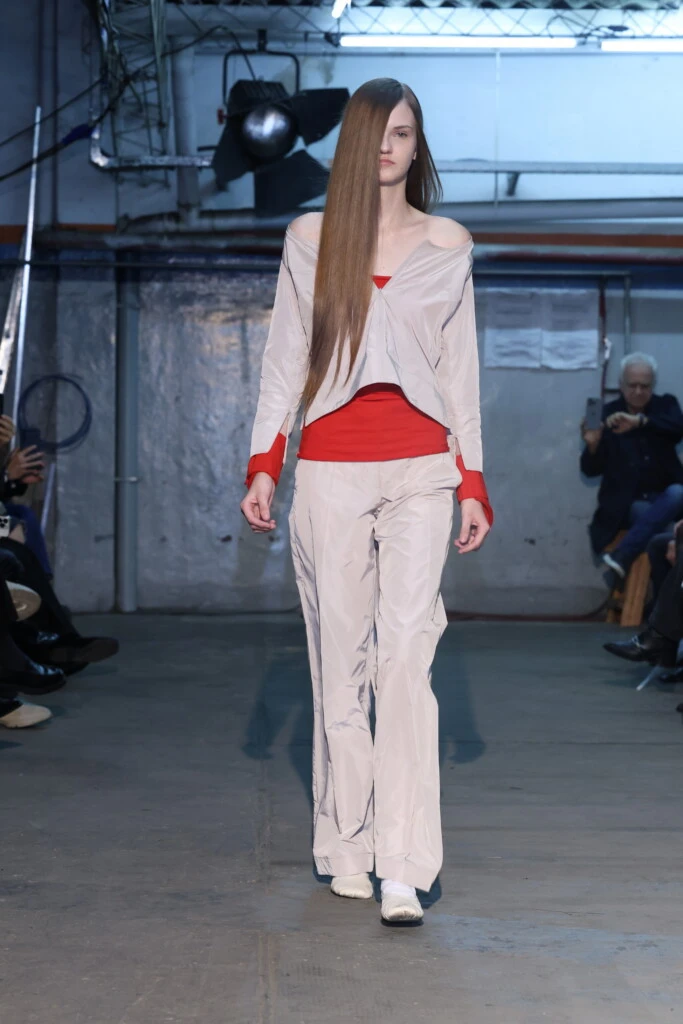 Esta combinación permite que la colección se mueva entre dos polos: la disciplina estructurada y una estética más blanda, casi emocional.
