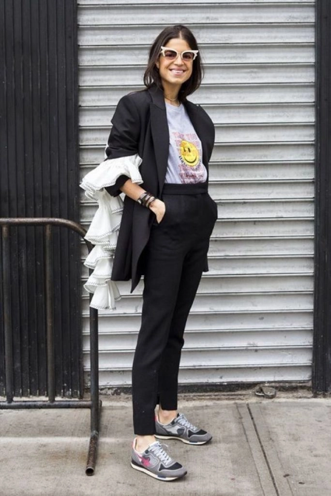 Traje con zapatillas, el nuevo uniforme para una working girl