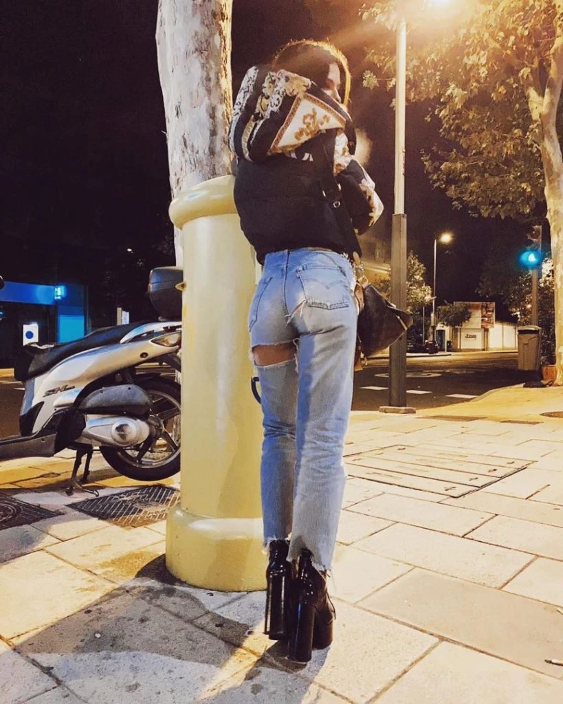Esta vez, la actriz se lookeaó con unos jeans rotos, de cintura alta y levemente anchos, tal como la tendencia lo indica, abotinados de charol con altísimas plataformas y una cartera de Louis Vuitton.