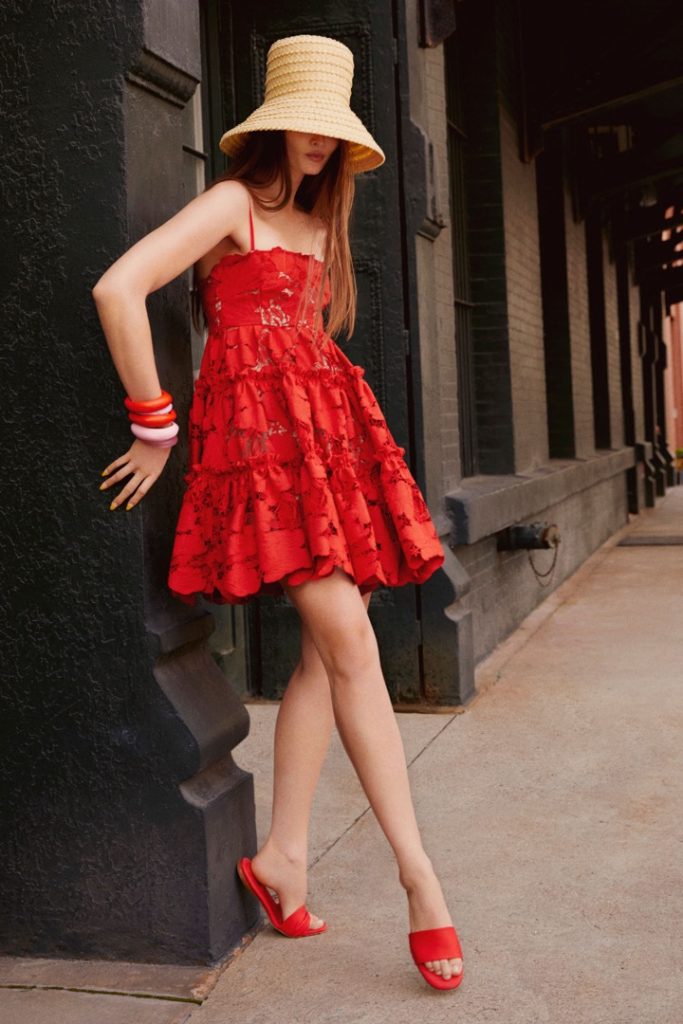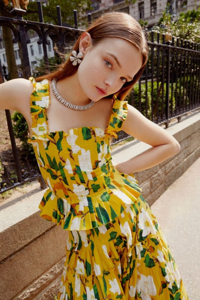 En un comunicado de prensa, la marca escribe que la primavera de 2022 está inspirada en los mercados de agricultores, un tema que vemos reflejado en una paleta de colores llena de rojos remolacha, rosas sandía, claras de cáscara de huevo, melón melón y naranjas papaya, así como en los estampados, que cuentan con flores de magnolia, floreros y fresas.