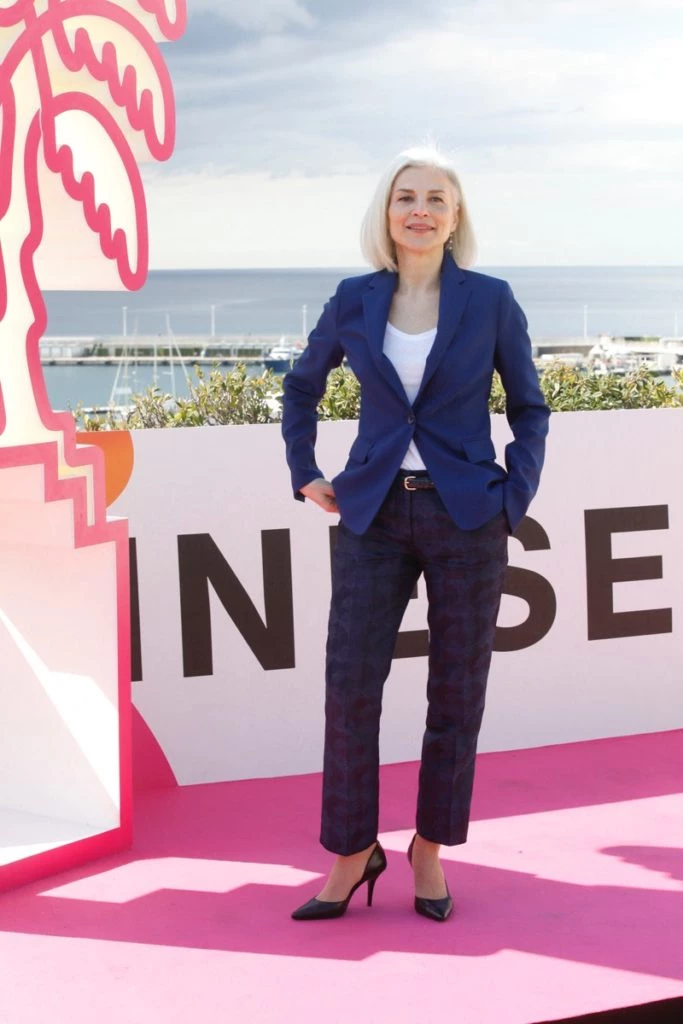 Mona Mina Leon, actriz de la serie "1985", fue una de las más aplaudidas. Adoptó una robe sn mangas en color azul eléctrico y llevó guantes del mismo género del vestido por encima de los codos.