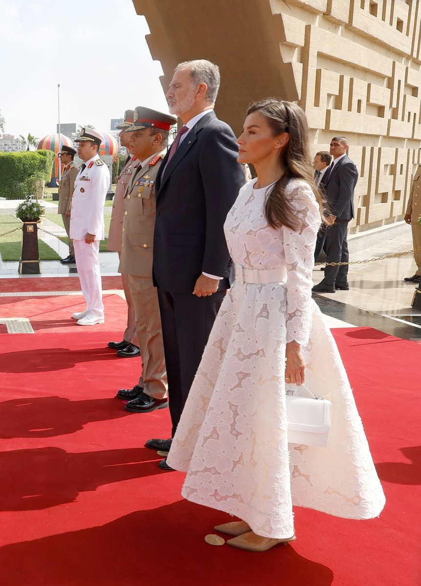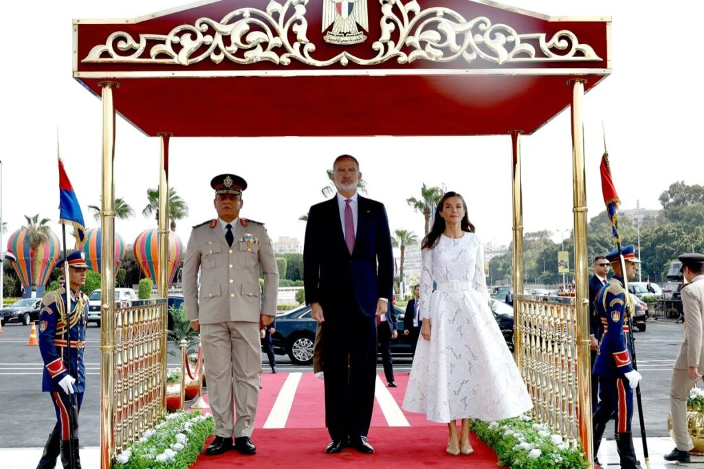 El primer día del viaje de Estado de los Reyes de España a Egipto comenzó con una ofrenda floral en el Memorial al Soldado Desconocido, seguida de la ceremonia de bienvenida en el Palacio Al-Ittihadiya, donde Felipe VI y Letizia fueron recibidos por el presidente Abdelfatah El-Sisi y la primera dama Entissar Amer El-Sisi. Luego participaron de un almuerzo oficial y recibieron las máximas condecoraciones del país: Felipe obtuvo el Collar de la Orden del Nilo y Letizia, la Orden Suprema de la Virtud.