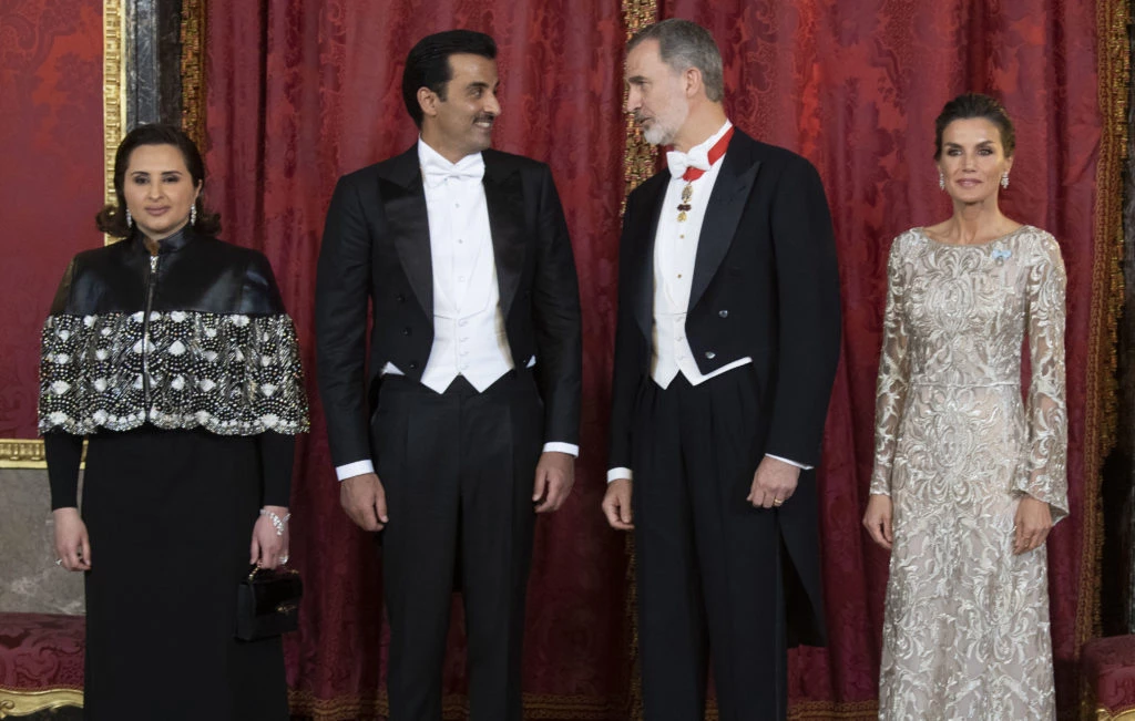 La esposa de Felipe usó un outfit de noche en la cena de gala que realizaron en honor al jeque Tamim Bin Hamad Al Thani, emir de Catar, y a la jequesa Jawaher Bint Hamad Bin Suhaim Than, en el marco de la visita de estado que tuvo lugar en el Palacio Real.