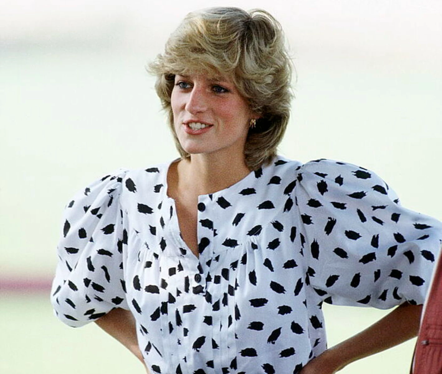 Lady Di lució este diseño fucsia con estampado de lunares de Donald Campbell durante su visita al estadio de hockey de Perth en Bentley, Australia, en 1983. Un dato no menor es que este atuendo fue replicado hace un tiempo por Zara y se agotó en pocos días.