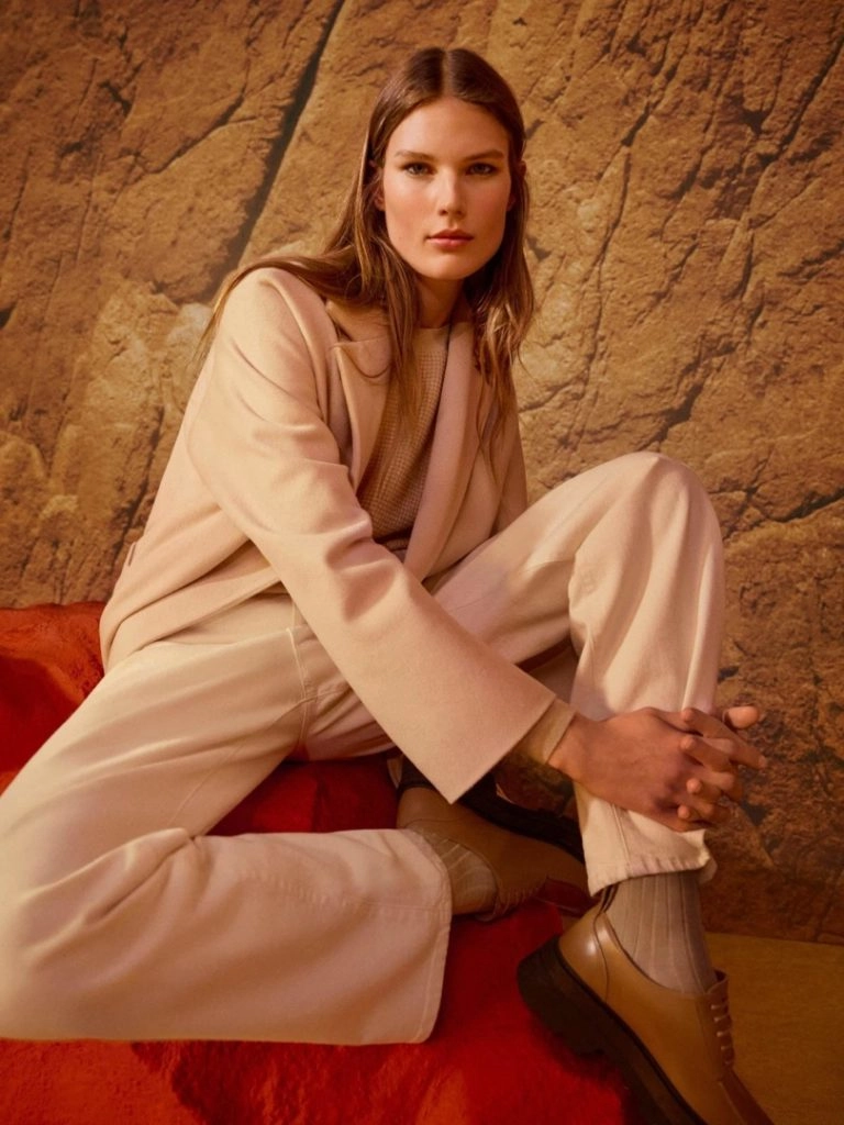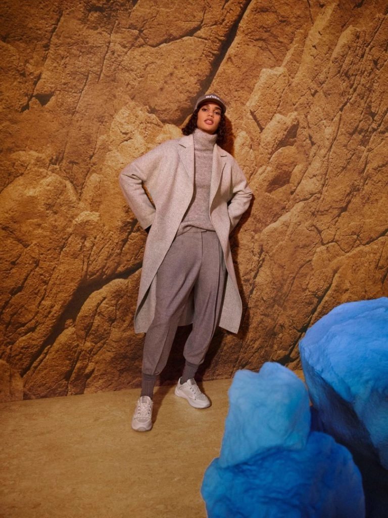 Una de las propuestas más originales de esta temporada de Hugo Boss y ésta: a un pantalón sastrero, lo convirtió en uno slouchy, el ítem de moda del invierno 2021. Ajustó las botamangas con unas medias. ¿No es original? Y además lo combinó con zapatillas para darle un aire más casual.