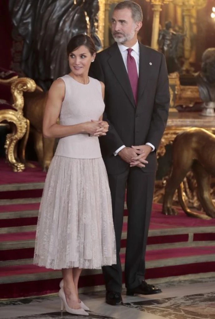 Cada vez que Letizia lleva un diseño de Carolina Herrera su magnetismo con el público es inmediato. La monarca tiene varias prendas de la diseñadora colombiana como también es amante de sus accesorios, sobre todo los zapatos sin talón que los tiene en muchos colores.