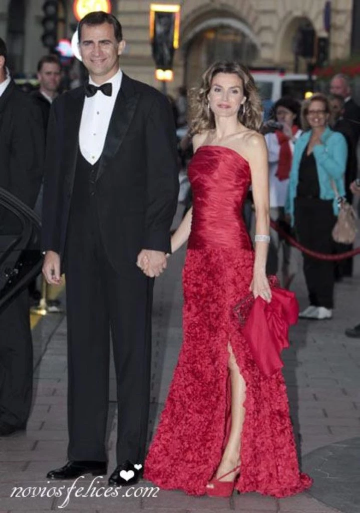 El diseñador Lorenzo Caprile vistió a la reina en muchas galas y sus vestidos siempre fueron de alto impacto visual. En la boda de Federico y Mary de Sinamarca deslumbró con un mega vestido rojo estilo Hollywood.