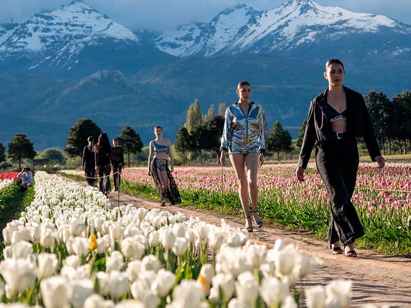 Benito Fernández presentó su colección con un desfile en el imponente Campo de Tulipanes de Trevelin