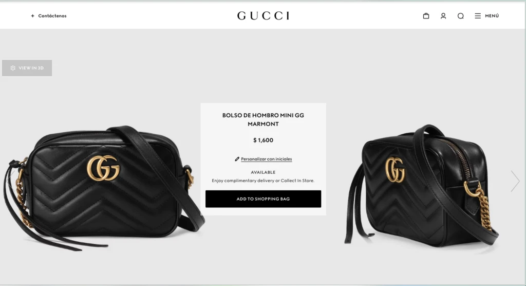 La caretera está hecha en cuero matelassé con un diseño de chevrones y GG en la parte posterior. Además, la correa de hombro con cadena tiene un detalle de cuero para el hombro y se puede llevar cruzada a modo de bandolera. La misma tiene un valor de dólares Us$ 1,600.
