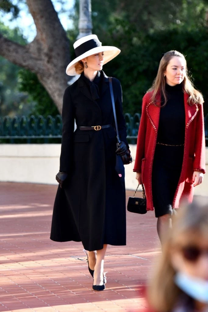 Beatrice Borromeo, la mujer de Pierre Casiraghi, fue otra de las mujeres que se distinguieron en la mañana. Súper sofisticada eligió un conjunto protagonizado por un abrigo negro de largo midi y le agregó un cinturón de cuero para marcar su cintura y así potenciar la silueta. En su caso, los accesorios tuvieron gran protagonismo: adoptó una gran pamela de color blanca con un acinta de raso a contra tono.